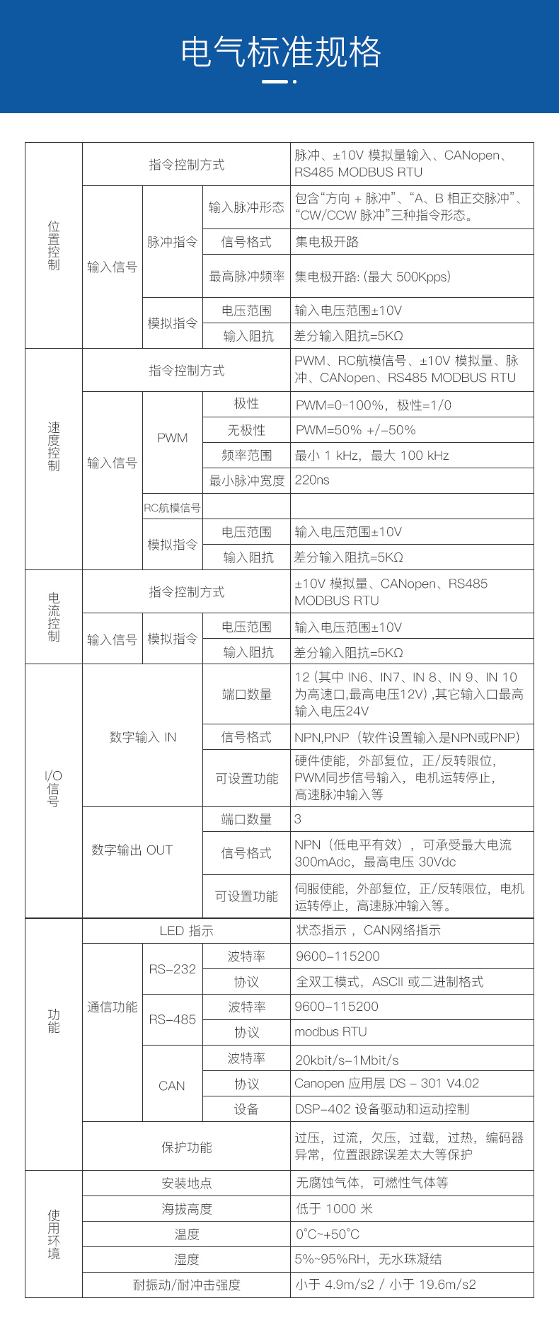 ?CAN2.0 局域總線,兼容 CANopen DS-402,波特率最高 1MHz ;